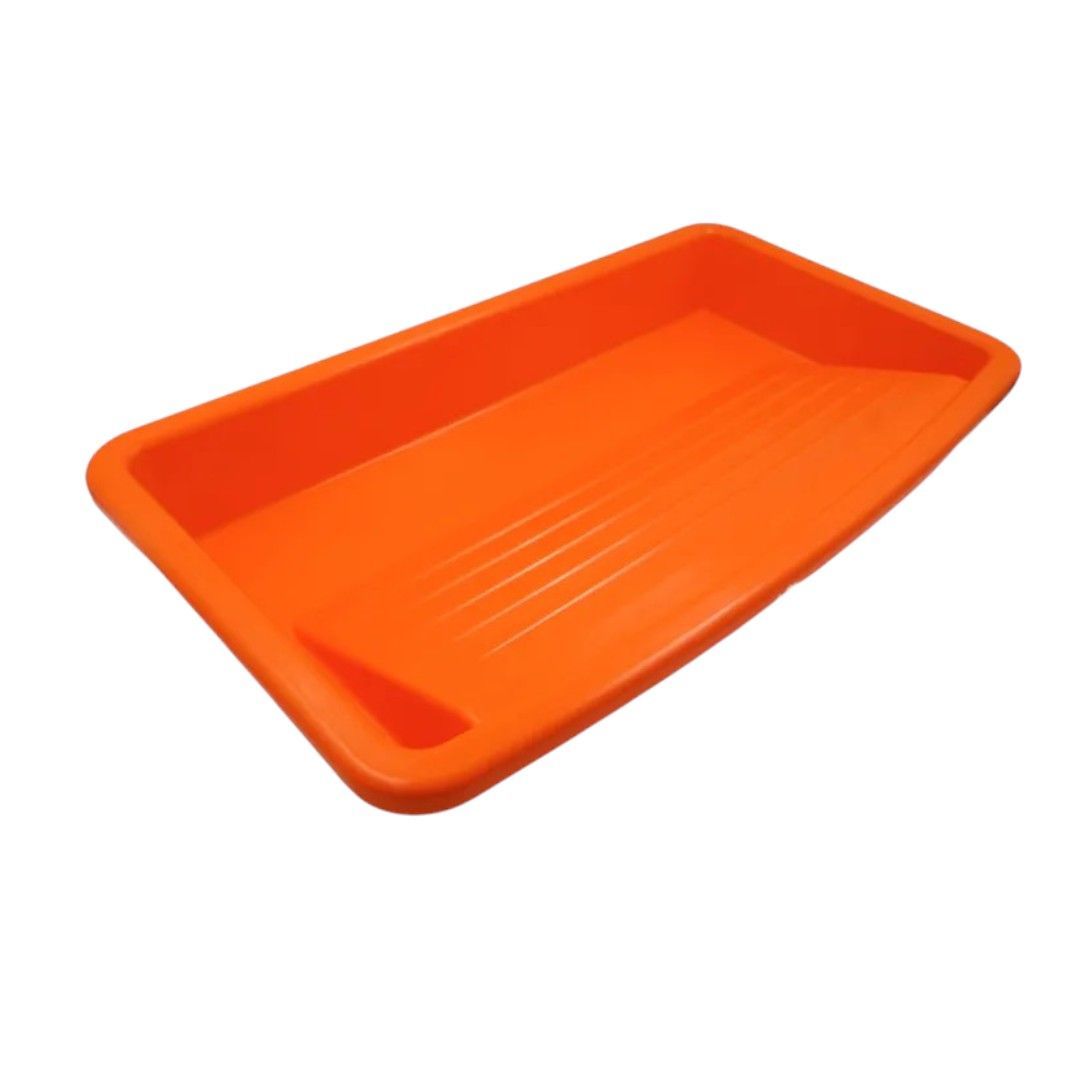 Seu design funcional, com área de escoamento, permite uma distribuição uniforme da tinta no rolo, evitando desperdícios e assegurando um acabamento de qualidade uniforme e profissional.