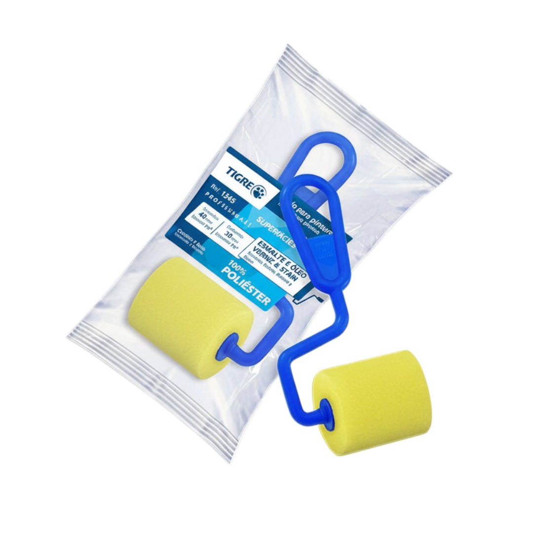 O Rolo de Espuma Amarela Tigre 1345 é ideal para acabamentos, cantos e áreas de difícil acesso, garantindo cobertura uniforme em superfícies lisas, especialmente madeira. Fabricado em poliéster amarelo de alta qualidade, oferece durabilidade, boa absorção e liberação controlada do produto, sendo excelente para uso com esmalte, óleo e verniz. Possui cabo anatômico, proporcionando conforto e precisão no manuseio.