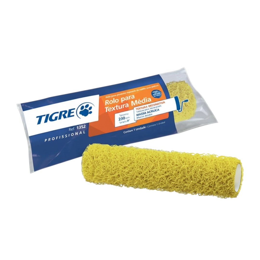 O Rolo para Textura Média Vinil Tigre 1352 é indicado para aplicar massas de textura e criar efeitos decorativos na aplicação de tintas, oferecendo uma solução econômica e versátil para valorizar paredes com acabamentos diferenciados. A superfície em borracha com fibra de vinil proporciona desenho de textura consistente e fácil de reproduzir.